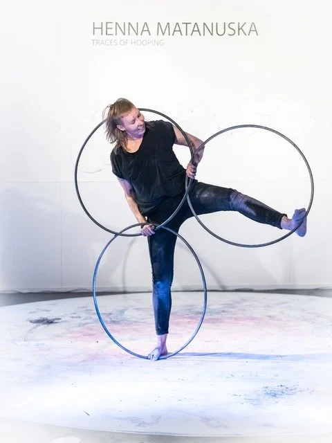 Traces of Hooping on improvisaatioon perustuva ja yleisöä osallistava, vannetaiteilija Henna Matanuskan luoma teos, joka tutkii millainen jälki jää autenttisesta liikkeestä tai millaista liikettä syntyy kun halutaan tuottaa tietynlaista jälkeä. Materiaaleina, hiili, kuivapastellit, hulavanteet ja tanssija ja pyöreä valkoinen alusta. Se on vuoropuhelua esiintyjien ja yleisön välillä. Yleisö tekee aluksi liike-ehdotelmia piirtäen ja käyttäen omaa luovuuttaan, tanssija tulkitsee ne omalla tavallaan, vanteiden kera saaden impulsseja muusikoilta. Esityksen aikana yleisö voi seurata jälkien syntyä eri kulmista, liikkuen tilassa. Lopuksi on iso pyöreä alusta täynnä liikettä, jälkien muodossa. Teoksessa on vierailleet useat muusikot mm. Antti Karvonen, Anna Pesonen, Sebastian Krühn sekä Ilmari Säävälä. Teos on muuntautuva tilasta riippuen. Uusin versio on mahdutettu kaksion olohuoneeseen.